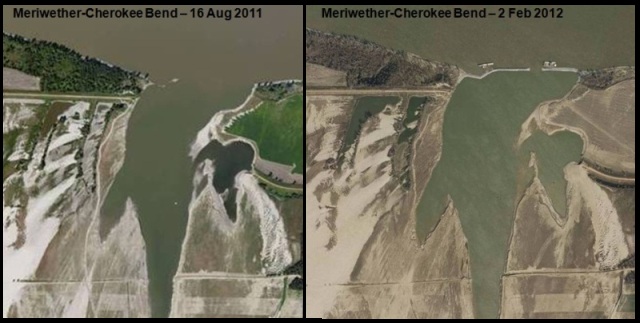 During the historic flood of 2011, the Mississippi River saw record breaking water levels between Cairo, IL and Memphis, TN. Near Tiptonville, TN, Sheep Ridge Spur Levee (private) was overtopped and crevassed when the Mississippi River hit 48.35 feet on the Tiptonville gage. As the waters receded, inspectors found 3,000 feet of levee crevassed and 2,700 feet of bank line eroded. The Mississippi River had begun to form a new cutoff from River Mile (RM) 869 to 860. The Mississippi River had eroded approximately 4,000 feet into Island 13, degrading the landscape to elevations 80 feet below natural ground.